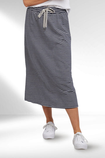 Travel the World in Stripes -- Elm's Travel Skirt in Navy and White Stripe is Your First-Class Ticket to Chic Adventures!