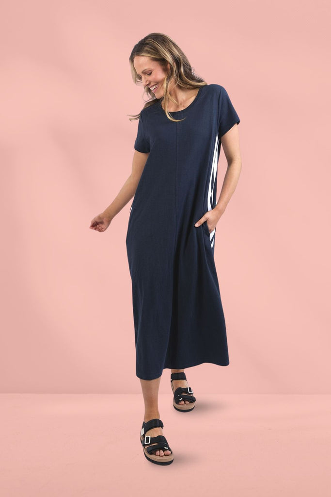 - The Stripe Dress pairs perfectly with sneakers for a day or heels for an evening event.